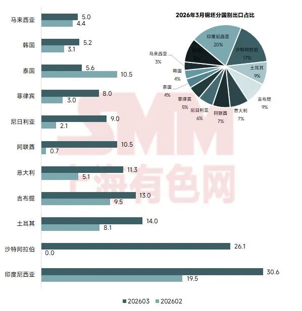 图4 2026年3月钢坯分国别出口情况